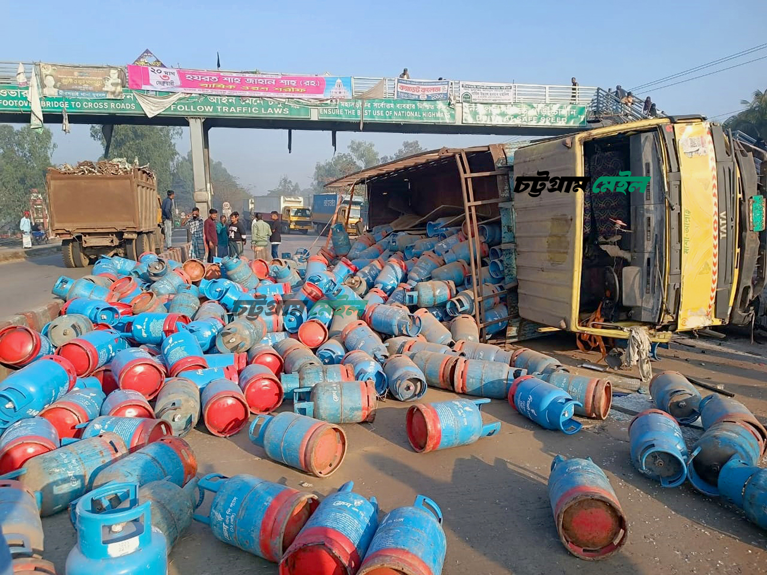 মহাসড়কে গড়াগড়ি খাচ্ছিল শতাধিক গ্যাস সিলিন্ডার, বিভাজকে থেঁতলানো লাশ
