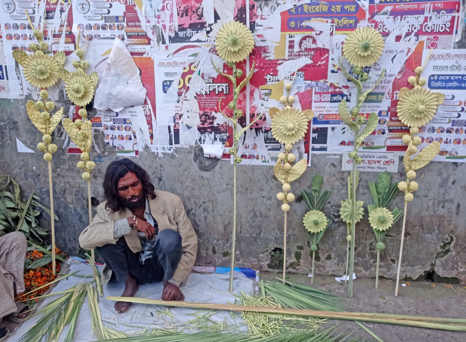 আমাদের দেশের বিভিন্ন অঞ্চলে অসংখ্য লোকজনের বসবাস। অনেক গুণে গুনান্বিত তারা যাদের অনেককেই দেশের শহরের লোকজন চেনেনা। আজ চেরাগিতে এমন একজনকে দেখা গেলো। নাম সুজন চিসতি। বাড়ি যশোরে। বেড়াতে এসে বর্তমানে তিনি অবস্থান করছেন চট্টগ্রামে। নগরীর চেরাগি পাহাড় এলাকার ফুলের দোকানসংলগ্ন ফুটপাতে বসেই খেজুর গাছের ডাল দিয়ে তার নিপুণ হাতে তৈরি হচ্ছে ‘সূর্যমুখী ফুল’।