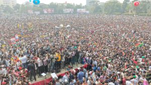 আজ বুধবার ৪ ফেব্রুয়ারি বরিশালের ঐতিহাসিক বেলস পার্ক মাঠে আয়োজিত বিশাল নির্বাচনী জনসভায় প্রধান অতিথির ভাষণে বাংলাদেশ জাতীয়তাবাদী দল বিএনপির চেয়ারম্যান জনাব তারেক রহমান বলেছেন, গত ১৬ বছরের হারানো অধিকার পুনরুদ্ধার করতে হবে এবং নতুন এক ‘জালেম’ শক্তির উত্থানের বিরুদ্ধে দেশবাসীকে সতর্ক থাকতে হবে।