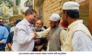 বৃহস্পতিবার (০৫ জানুয়ারী) বেলা ১১টায় ১৬নং চকবাজার ওয়ার্ডের টাক শাহ্ মিয়া মসজিদ লেইন, চন্দনপুরা, সিরাজউদ্দৌলা রোড, একসেস রোড এলাকায় গণসংযোগকালে সংক্ষিপ্ত পথসভায় প্রধান অতিথির বক্তব্যে তিনি এসব কথা বলেন। এসময় তিনি দলীয় নেতাকর্মীদের সঙ্গে নিয়ে চকবাজার ওয়ার্ডের বিভিন্ন অলিগলি ঘুরে জনগণের মাঝে লিফলেট বিতরণ করেন। সাধারণ মানুষের সঙ্গে সরাসরি কথা বলেন, তাদের দোয়া ও সমর্থন কামনা করেন এবং ধানের শীষ প্রতীকে ভোট চান।