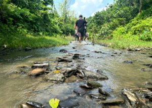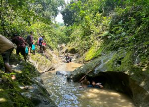 ঝিরি পথ জুড়ে ছোট বড় নানা আকারের পাথর। পাথরের গা ছুয়ে বয়ে চলেছে জলের ধারা। কোথাও হাঁটু পানি আবার কোথাও কোমর সমান। ঝিরির জল ডিঙিয়ে পথ চলা। জন মানুষের দেখা নেই।